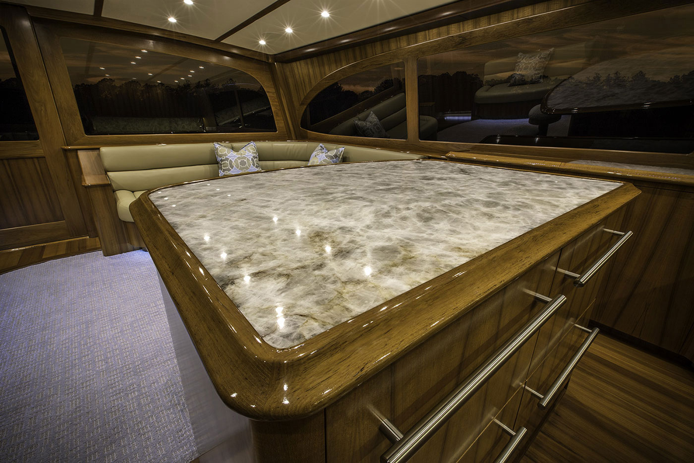 | COCKPIT ARRANGEMENT | Mezzanine, stainless steel liners (2 ref/freezers, 1 large ice maker, 2 storage) wolf grill, tackle drawers |