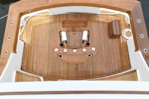 | BRIDGE ARRANGEMENT | Large console port to center with electronics and glove box, forward seating port and starboard with sunbed. |