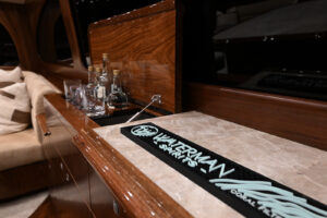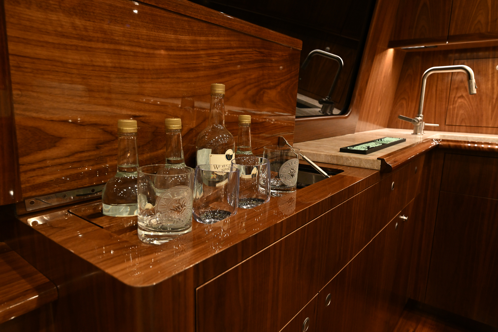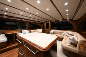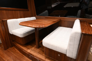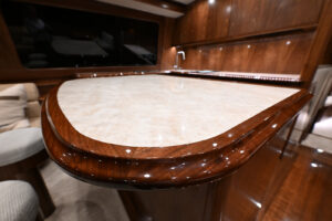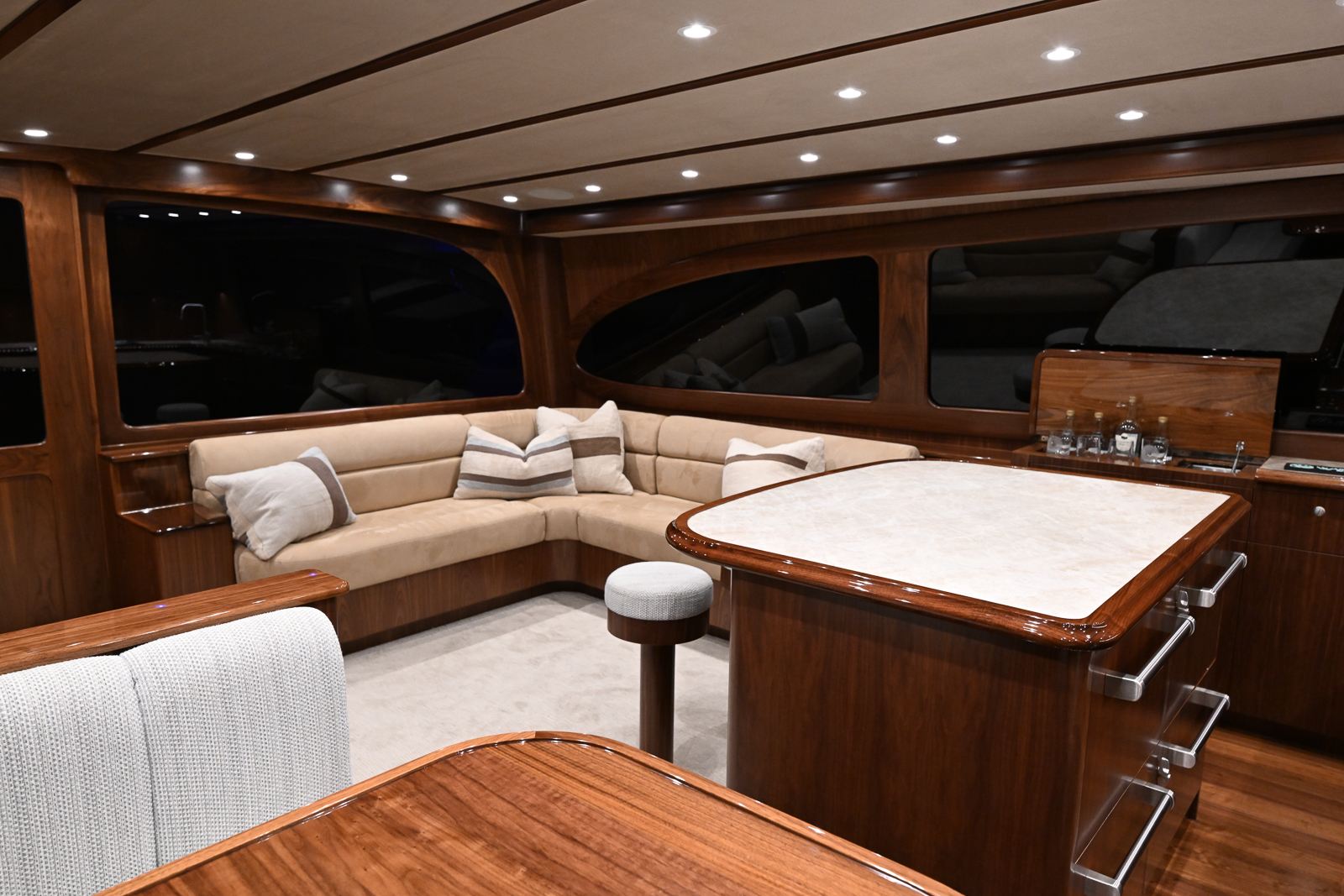 | BRIDGE ARRANGEMENT | Large console port to center with electronics and glove box, forward seating port and starboard with sunbed |